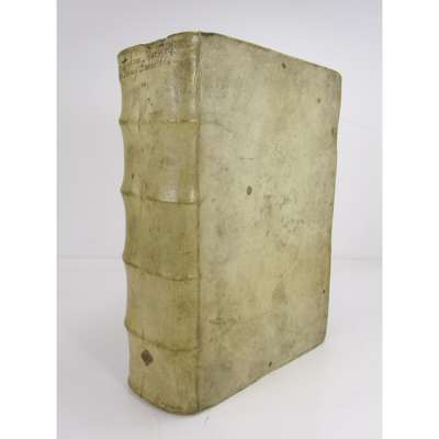 Venice: Vincenzo Valgrisi, 1565. Folio, portrait, woodcuts in text, 16th? century vellum with manuscript title to spine, neat bookplate reading 'GOM' to paste-down endpaper, occasional very light marginal dampstaining, early ownership signature, Fletcher, to title-page and a few neat annotations to text in an early hand, ties/clasps lacking, covers a little soiled, a few very small marginal wormholes, including to paste-down endpaper [USTC 841574 listing a collation as pp. [172] 1459 [13]; this copy collates [170] 1459 [13] suggesting an initial blank may be lacking; the collation matches that given in Hunt, 94]