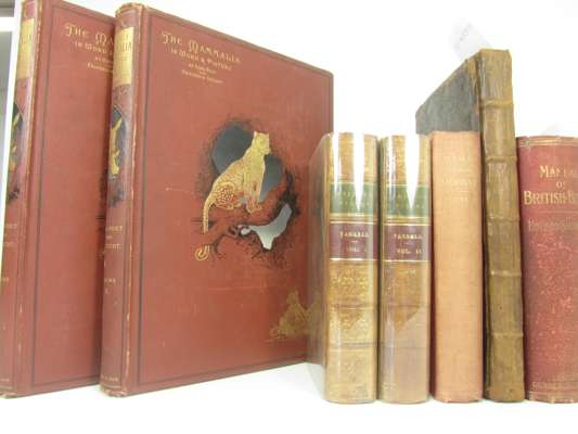 Our Native Ferns. 1874. 2 volumes, 8vo, plates, original pictorial cloth gilt; Chalmers, P. Birds ashore and aforeshore. 1935. 4to, original cloth, dust-jacket; Weismann, A. Essays upon Heredity. Oxford, 1889, 8vo, original cloth, spine repaired; Pratt, A. The Ferns of Great Britain. [n.d.], 8vo, colour printed plates, original cloth, rubbed; Thompson, R. The Gardener's Assistant. Glasgow, [1859], 12 hand-coloured lithographed plates, original pictorial cloth gilt; Maxwell, Sir H. Flowers. A Garden Note Book. 1923. 4to, green quarter morocco gilt, t.e.g., dustwrapper; Tulasne, L.R. & C. Selecta Fungorum Carpologia. Oxford, 1931, 3 volumes, folio, dustwrappers; Smith, K.M. Mumps, Measles & Mosaics. New Naturalist. 1954. First edition, dustwrapper; Nethersole-Thompson, D. The Greenshank. New Naturalist. 1951. First edition, dustwrapper; Yarrell, William A History of British Fishes. London: John van Voorst, 1859. Third edition, 2 volumes, 8vo, contemporary tree calf with red and green morocco labels to spines; Baxter, Evelyn V. & Leonora Jeffrey Rintoul. Edinburgh: Oliver and Boyd, 1953. 2 volumes, 8vo, some wear to dust-jackets; Vogt, Carl & Friedrich Specht The Mammalia in Word and Picture. London: Blackie & Son, 1887. 2 volumes, folio, original terracotta cloth with gilt leopard motifs to upper covers; and several others