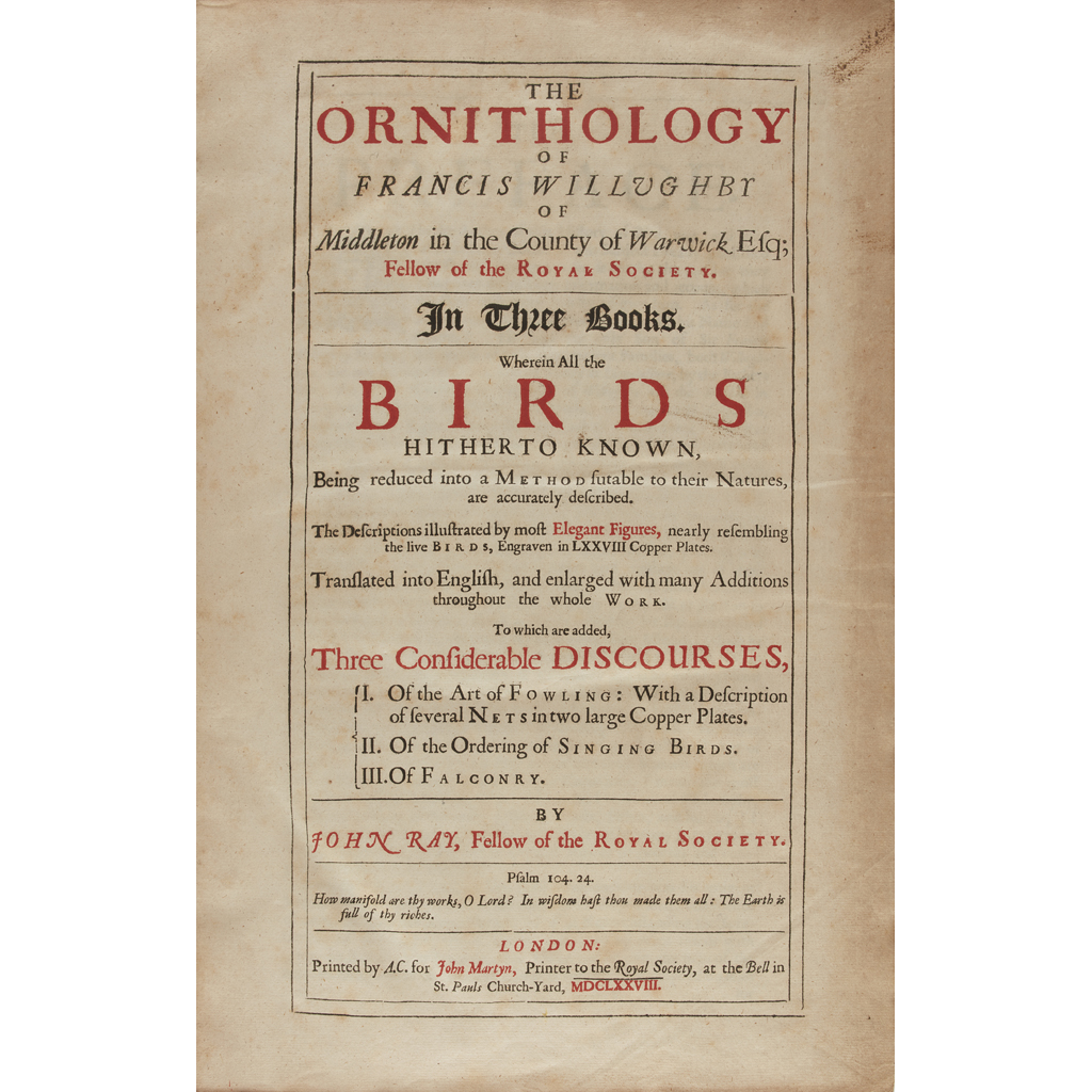 THE ORNITHOLOGY OF FRANCIS WILLUGHBY... IN THREE BOOKS