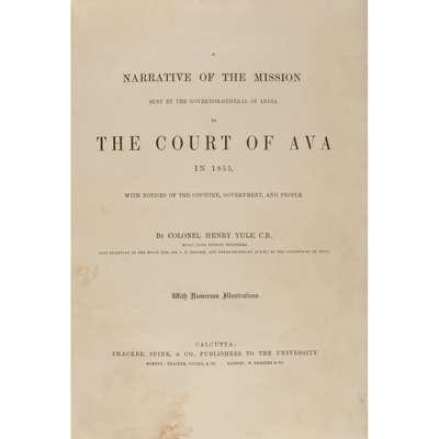 Calcutta: Thacker, Spink & Co., [1857]. 4to, 20 tinted or coloured lithographed plates, 6 plain lithographed plates, 3 coloured maps, folding map at end, illustrations, modern quarter calf retaining original gilt spine, orange cloth, slight dampstain at foot of title