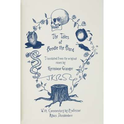 Note: " 'You've never heard of The Tales of Beedle the Bard?' said Ron incredulously. 'You're kidding, right?' " - the aghast tones of Ron Weasley upon discovering his friend, Hermione Granger (born to Muggle [non-wizarding] parents) had never read the wizarding world's most famous fairy tales. J.K. Rowling subsequently wrote The Tales of Beedle the Bard, producing a deluxe copy of the work in aid of the charity Children's High Level Group (now Lumos). 100 signed, numbered copies of this work were randomly distributed to buyers on Amazon.com, who were surprised to receive a special copy of the book in the post. This book is an out-of-series copy, specially signed by Rowling.