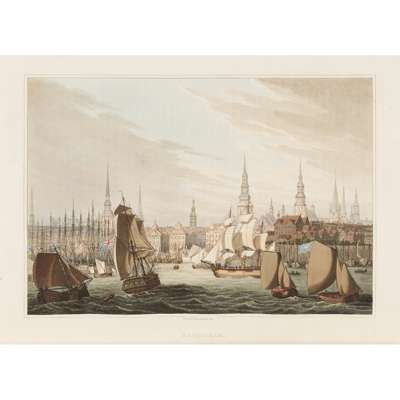 London: R. Bowyer, 1815; Bound with The Campaign of Waterloo. 1816. Large folio, 23 hand-coloured aquatints (5 double-page), 2 maps & plans and 4 uncoloured plates, two plates with marginal split at fold, contemporary brown half morocco, rebacked retaining original spine, rubbed, a little light dust-soiling, mostly marginal