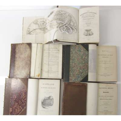 Edinburgh, 1819. First edition, 2 volumes, large folding coloured map, contemporary half calf, rubbed, one joint splitting, occasional light dampstains; Constable & Co. The Edinburgh Gazetteer. Edinburgh, 1824. 8vo, engraved title, 9 folding maps, pp.17-18 misbound, contemporary calf, neatly rebacked; Argyll, Duke of Scotland as it was and as it is. 1887. 2 volumes, brown half morocco, t.e.g.; Hogg, James The Jacobite Relics of Scotland. Edinburgh 1819. 2 volumes, 8vo, contemporary calf, neatly rebacked, a few spots; Jesse, J.H. Memoirs of the Pretenders and their Adherents. 1845. 2 volumes, 8vo, plates, folding facsimile, 19th century green half morocco gilt, slightly rubbed (9)