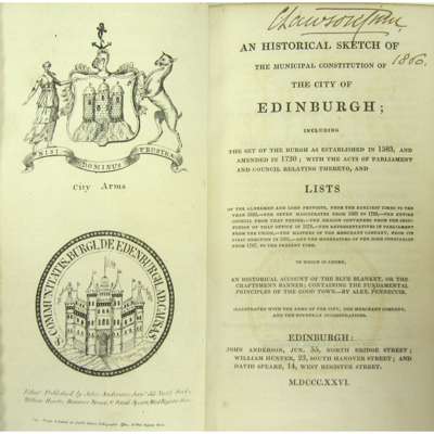 Scutum Regale, the Royal Buckler, or Vox Legis, a Lecture to Traytors. London, 1660. 8vo, engraved frontispiece (caption cropped) and 2 plates, 1 folding, contemporary sheep, P1-8 slightly wormed, rubbed, [ESTC R17723]; Mackenzie, Sir George Jus Regium, or the Just and Solid Foundations of Monarchy. London, 1684. 8vo, modern quarter calf, title repaired in inner margin, lacks frontispiece portrait, [ESTC R945]; Creech, William An Account of the the Trial of William Brodie and George Smith. Edinburgh, 1788. First edition, 8vo, 2 plates, original boards, uncut, rebacked; Criminal Trials illustrative of the tale entitled "The Heart of Mid-Lothian". Edinburgh, 1818. 12mo, frontispiece, modern quarter calf gilt; [Glencoe] Authentic Narrative of the Massacre of Glencoe. Glasgow, 1818. 12mo, modern cloth' [Glencoe] The Massacre of Glencoe. Edinburgh, 1819. 12mo, modern boards; Chalmers, George The Poetic Remains of some of the Scotish Kings. London, 1824. 8vo, engraved frontispiece and folding facsimile, contemporary salmon morocco gilt, g.e., joints rubbed; [Edinburgh] An Historical Sketch of the Municipal Constitution of the City of Edinburgh. Edinburgh, 1826. 8vo, folding tables neatly mounted on vellum, contemporary black morocco gilt, g.e.; Historical Reprints taken from the Free-Holder. 12mo, 7 items, each limited to 200 copies, later blue cloth;; Richardson, M.A., publisher. Newcastle Reprints of Rare Tracts. Chiefly illustrative of the History of the Northern Counties. Newcastle, 1847, 8 tracts in one volume, each limited to 100 copies, 19th century maroon half morocco, rubbed, very slight dampstaining to extreme outer edge of some leaves