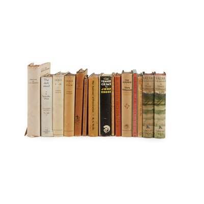 Mansfield, Katherine. The Garden Party and other Stories. 1922. First published edition; Bates, H.E. The Seekers. 1926, inscribed by the publisher, original boards; Queen, Ellery. The Dutch Shoe Mystery. 1931, first British edition; Rhode, John. The Venner Crime. 1933, dustwrapper; Sackville-West, V. The dark island. Hogarth Press, 1934, dustwrapper ("Colonial edition"); Williamson, Henry. Salar the Salmon. 1935, 2 copies, dustwrappers; Williamson, Henry. Tarka the Otter. New York, 1927, dustwrapper frayed; Rhys, Jean. The Left Bank. New York, [1927], front endpaper nearly detached; Stephen, Adrian. The "Dreadnought" Hoax. Hogarth Press, 1936. original boards, upper joint split, slightly soiled; Wells, H.G. The Common Sense of World Peace. Hogarth Press, 1929, dustwrapper; Brecht, Bertolt. A Penny for the Poor. New York, 1938. First edition in English, first American edition, original cloth, dustwrapper slightly frayed and repaired on verso; and others, some in dustwrappers