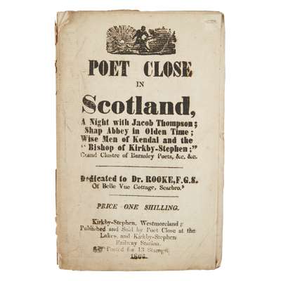 A Night with Jacob Thompson. Kirkby-Stephen: Poet Close & Kirkby-Stephen Railway Station, 1866. 8vo, 4pp. adverts, plates including folding plate at rear, original wrappers [Jisc lists only 3 copies in UK libraries]