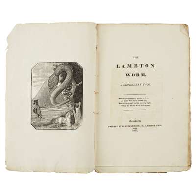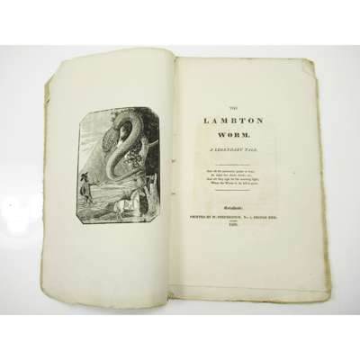 Gateshead: Printed by W. Stephenson, 1830. First edition, 8vo, 24pp. (including frontispiece woodcut), woodcuts, original wrappers, woodcuts on both wrappers, uncut, worn. VERY RARE