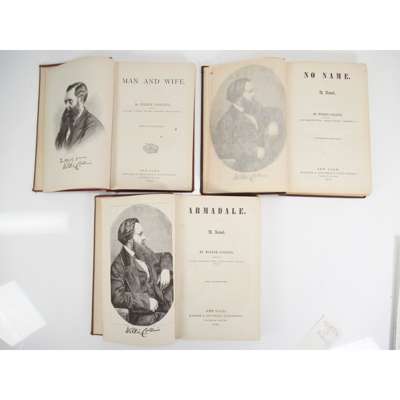 No Name. New York: Harper & Brothers, 1863, frontispiece, 2pp. adverts at end; Armadale. New York: Harper & Brothers, 1866. Frontispiece, advertisement leaf before title; Man and Wife. New York: Harper & Brothers, 1870, frontispiece, 4pp. adverts at end, all original blind-stamped cloth, rubbed (3)