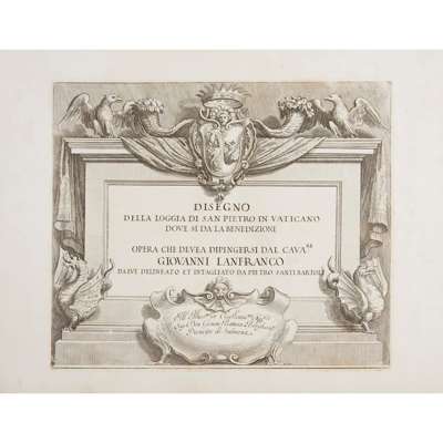 Opera che devea dipingersi dal Cava.re Giovanni Lanfranco da lui delineato et intagliato da Pietro Santi Bartoli. Rome: [no publisher, 1665] Oblong folio, engraved title and 30 plates, original cloth-backed boards, a few spots, hinges weak, rubbed