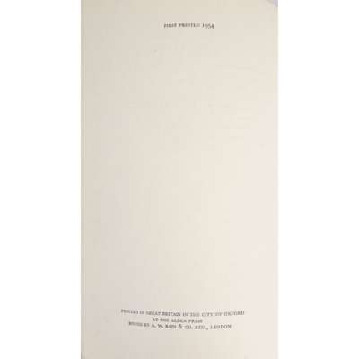 London: Jonathan Cape, 1954. First edition, Gilbert's second issue dust-jacket with artist's credit 4mm below blurb on inner flap, "Overseas Edition" stamped to title-page, 8vo, dust-jacket not price-clipped but slightly chipped at head of spine, some very slight internal soiling and foxing particularly to fore-edges [Gilbert A2a, 1.3; Campbell 2007A1]