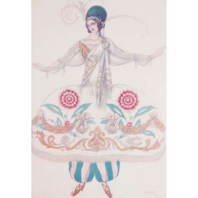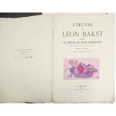 Pour la Belle au Bois Dormant. Paris: M. de Brunoff, 1922. Folio, number 20 of 500 copies signed by Bakst, portrait of Bakst by Picasso and 54 plates, original wrappers, glassine wrapper, one plate soiled, some dampstaining and disintegration affecting glassine wrapper, covers and a few plates, some plates and leaves a little loose