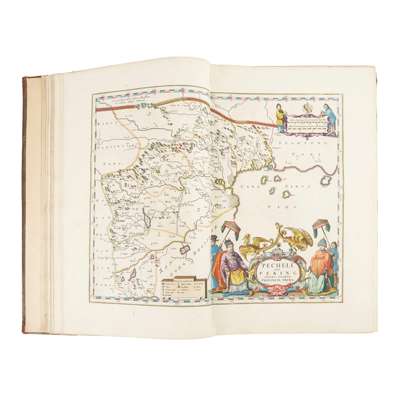 Note: This magnificent atlas was published both as a separate volume by Blaeu in 1655, with the title Novus Atlas Sinensis, as well as comprising volume VI of Blaeu’s Nieuwe Atlas 1649-58 in Dutch and Theatrum Orbis Terrarum; sive, Novus Atlas 1655 in Latin, as with the present copy. Blaeu's maps of China were engraved after Martini's sketches and observations. Martinus Martini (1614-1661), a Jesuit missionary, worked in China from 1642, amassing many Chinese books and maps, including a copy of Zhu Siben's 14th-century atlas of Chinese provinces, with amendments from Lo Hongxian's atlas of 1555. The hand-coloured double-page maps consist of a general map of China, 15 maps of the provinces, and a map of Japan, and the present atlas, as with many copies, does not have the main title.