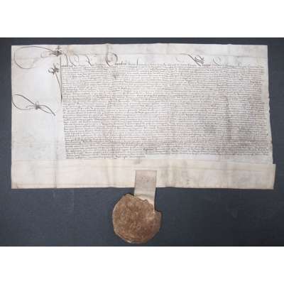 3rd March 1504, granting to John Sinclare [Sinclair] of Hurdmanstoun [Herdmanston, Haddingtonshire] all the lands of Hurdmanstoun with castle, fortalice and mill, together with the rights of patronage, advowson, and donation of the Chapel of St. John the Evangelist, near the castle, lying within our shire of Edinburgh, manuscript on vellum, with Great Seal in wax attached, seal worn with slight loss, c. 49 x 33cm.