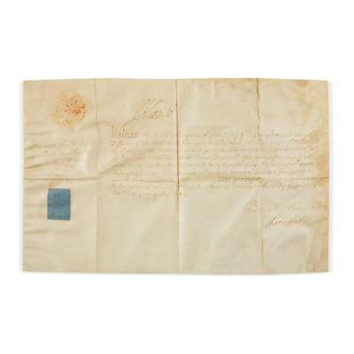 Written on vellum in a secretarial hand, signed 'William R.' above the text, 21.5 x 35cm, appointing John Mussage as Adjutant to the Regiment of Foot, dated 7th April 1697