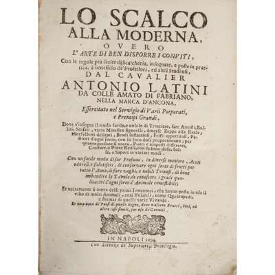 Note: Latini was an assistant cook, waiter, wardrobe attendant and finally steward of Cardinal Antonio Barberini, before relocating to Naples to become steward for Don Stefano Carillo Salcedo, first minister to the Spanish viceroy of Naples. Latini's famous cookery book contains the earliest surviving recipe for tomato sauce - tomatoes having hitherto been used predominantly as table decorations.