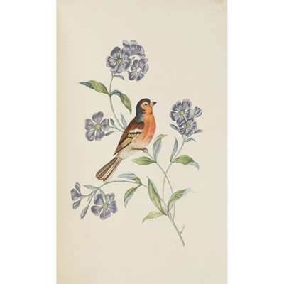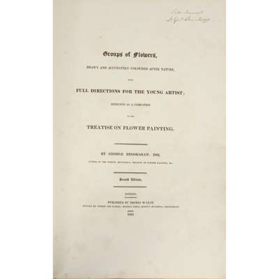 London: Thomas McLean, 1819. Second edition, folio, half title, inscription to title page, 6 plates in two states, coloured and plain; bound with [Idem] Groups of Fruit... London: Thomas McLean, 1819. Second edition, half-title, 6 plates in two states, coloured and plain; bound with [Idem] Six Birds... London: Thomas McLean, 1819. Second edition, 6 plates in two states, coloured and plain; three works bound in one volume, red morocco panelled gilt tooling, spine banded in five compartments with gilt motifs, wear to covers, corners edgeworn, hinge split, spotting throughout