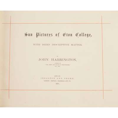 Eton: Ingalton and Drake, 1871. Oblong 4to, 17 tipped-in albumen prints, contemporary tree calf gilt, upper cover detached, a little rubbing to spine, a little light internal foxing