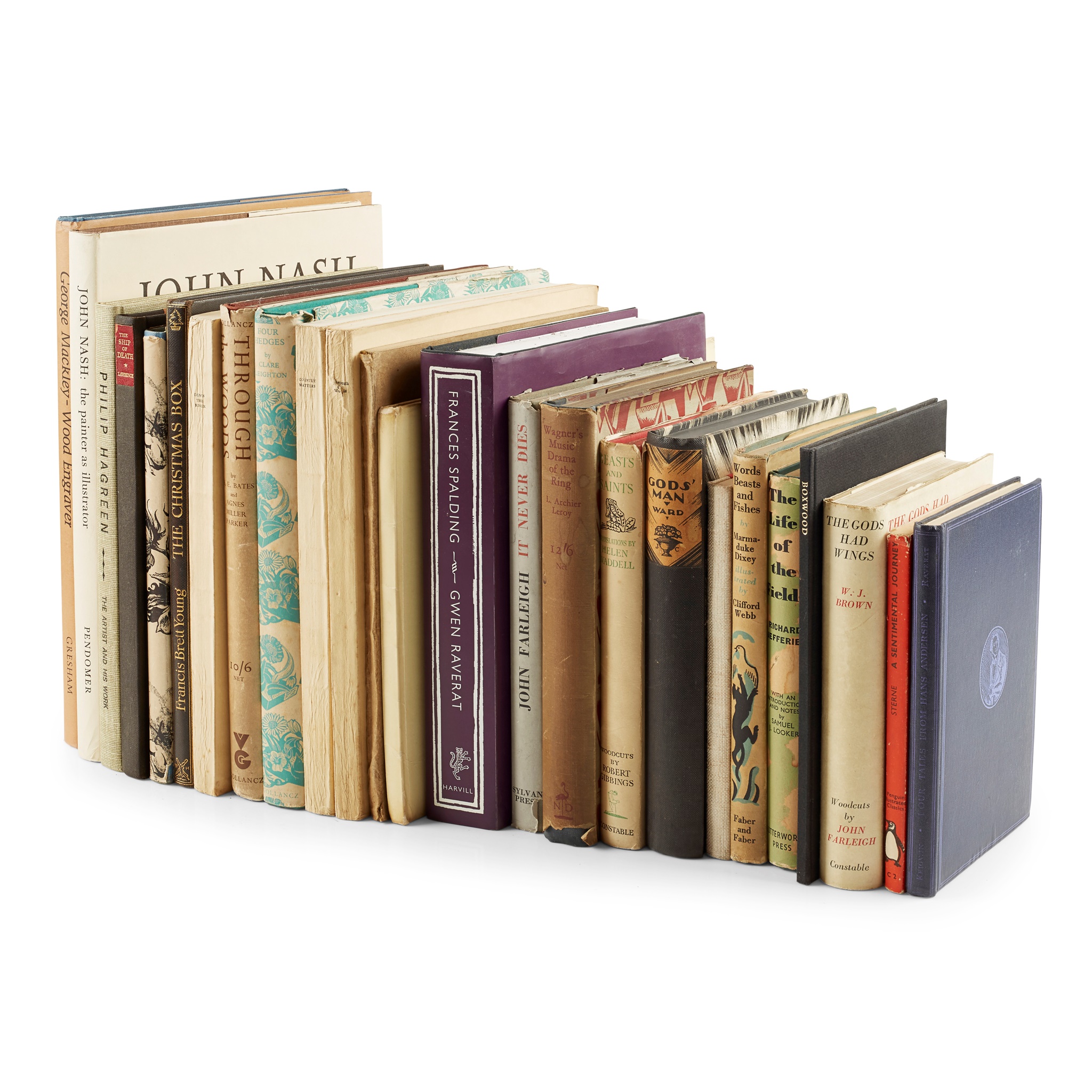 Wagner's Music Drama of the Ring. Noel Douglas, n.d., wood-engravings by Paul Nash, original cloth-backed decorated boards, dustwrapper; Bates, H.E. Through the Woods. 1936. 4to, dustwrapper, wood-engravings by Agnes Miller Parker; Bates, H.E. Through the Woods. 1936. , wood-engravings by Agnes Miller Parker, dustwrapper; Bates, H.E. Down the River. 1937, wood-engravings by Agnes Miller Parker, Uncorrected Proof Copy, wrappers; Leighton, Clare Four Hedges. 1935. 4to, dustwrapper, wood-engravings; Leighton, Clare. Country Matters. 1937. 4to, Uncorrected Proof Copy, wrappers; Leighton, Clare. Southern Harvest. 1943. 4to, uncorrected Proof Copy, wrappers;Southern Harvest. 4to, original cloth, dustwrapper frayed; Leighton, Clare. The Musical Box. 1936, Oblong 4to, original pictorial boards; Warner, S.T. Boxwood. 1947, wood-engravings by Reynolds Stone, original cloth; Ward, Lynd. God's Man, a novel in woodcuts. 1930. First edition, original cloth-backed pictorial boards; Pepler, Douglas. The Devil's Devices. 1915. 8vo, woodcuts by Eric Gill, original cloth-backed pictorial boards; Waddell, Helen. Beasts and Saints. 1934. First edition, woodcuts by Robert Gibbings, dustwrapper; Young, F.B. The Christmas Box. [n.d.], 4to, illustrations by Kay Ambrose, original cloth; Brown, W.J. The Gods had Wings. 1936, wood-engravings by John Farleigh, dustwrapper price clipped; Andersen, Hans C. Four Tales. Cambridge, 1935, woodcuts by Gwen Raverat, original cloth; Webb, Clifford. Words, Beats & Fishes. 1936, dustwrapper; Jefferies, Richard. The Life of he Fields. 1947. 8vo, wood-engravings by Agnes Miller Parker, dustwrapper price clipped; Philip Hagreen. The Artist and His Work. 1975. 4to, number 29 of 200 copies, original cloth; Farleigh, John. It Never Dies. 1946, dustwrapper; Gresham Books Ltd. George Mackley, Wood Engraver. 1981. Folio, dustwrapper; Lawrence, D.H. The Ship of Death. 1933. Wood-engravings by Blair Hughes-Stanton, original quarter cloth; Lewis, John. John Nash, the painter as illustrator. The Pendomer Press, 1978. Folio, dustwrapper; Spalding, F. Gwen Raverat. 2001. 4to, dustwrapper; and a paperback illustrated by Gwen Raverat