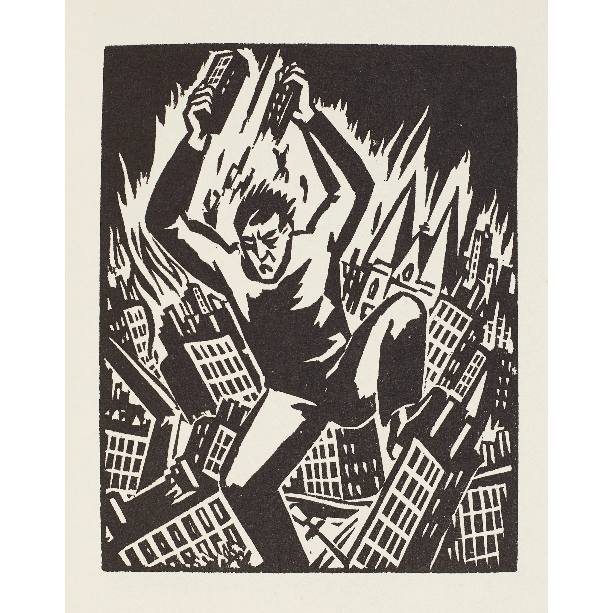 Idée/ Paris: Ollendorff, 1920. Number 632 of 800 copies, original wrappers; Philippe, C.L. Bubu vom Montparnasse. Munich: K. Wolff, 1920. 8vo, original cloth-backed pictorial boards, lightly soiled, lightly rubbed; Das Werk. Munich: Kurt Wulff, 1928. 8vo, dustwrapper; Rolland, R. Liluli. Frankfurt, 1924, 2 copies, original cloth-backed pictorial boards; Landschaften und Stimmungen. Munich: Kurt Wolff, 1929. 8vo, original boards, pictorial dustwrapper slightly spotted and slightly torn; Sahl, H. Jemand. Ein Chorwerk. Zurich: Oprecht, 1938. 4to, original pictorial boards, some spotting, binding somewhat spotted, slightly rubbed; Mesnil, Jacques. Frans Masereel. Berkeley Hiehghts: The Oriole Press, 1934. Tall 8vo, limited to 200 copies, parchment-backed boards, ? original tissue paper wrap-around, all with woodcuts by Masereel (8)