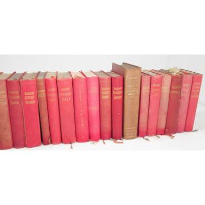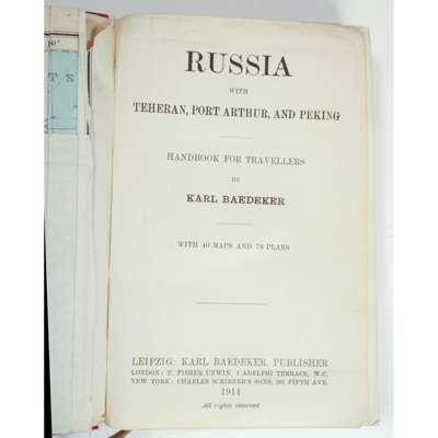 Baedeker, Karl Russia with Teheran, Port Arthur, and Peking. Leipzig, 1914. First edition in English, 12mo, maps and plans, original limp red cloth gilt covers; [Idem] The United States, with excursions to Mexico, Cuba, Porto Rico, and Alaska. Leipzig, 1909. 12mo, maps, original limp red cloth gilt covers; [Idem] Konstantinopel Balkanstaaten, Kleinasien Archipel, Cypern. Leipzig, 1914. Second edition, 12mo, maps and plans, original cloth, rebacked; [Idem] Palestine and Syria. Leipzig, 1912. Fifth edition, 12mo, maps and plans, original red cloth; [Idem] Egypt and the Sûdân. Leipzig, 1929. Eighth revised edition, 12mo, maps and plans, original red cloth gilt; Murray, John A Handbook for Travellers in India, Burma and Ceylon. London, 1919. Tenth edition, 8vo, maps and plans, original orange cloth gilt; [Idem] & Sir Lambert Playfair Handbook for Travellers in Algeria and Tunis. London, 1887. Third edition, 8vo, maps and plans, original red cloth gilt; and a collection of others covering Europe (28)