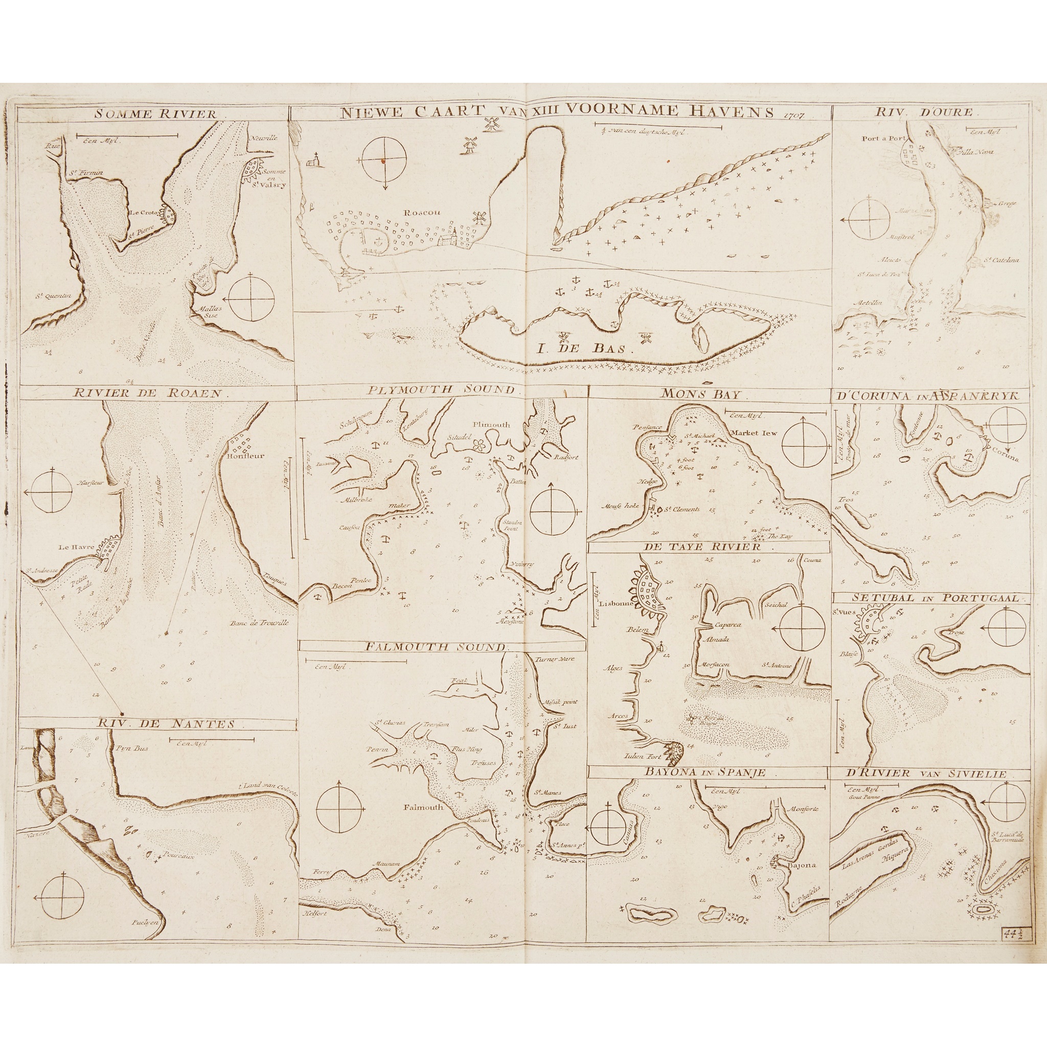 Amsterdam: Joannes Loots, 1708. Folio, disbound map of the Dutch coast and 29 other double-page maps, contemporary vellum, ties broken, many maps loose, a little soiling to covers