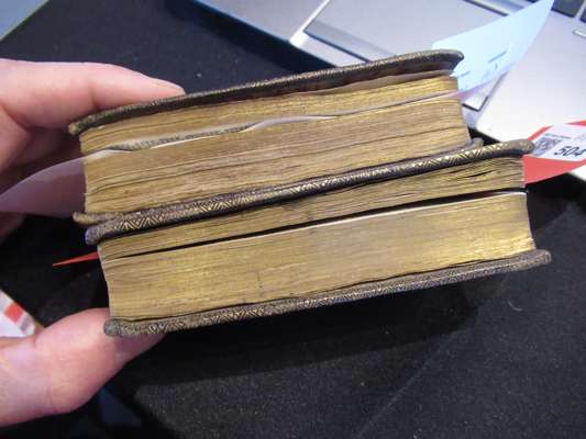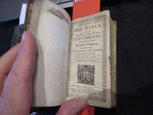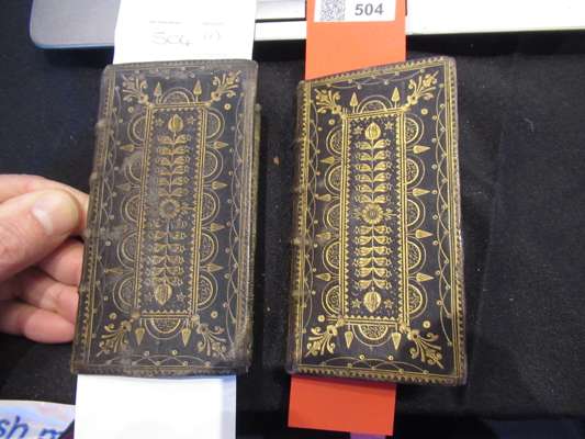 Edinburgh: James Watson, 1719. 2 volumes, 12mo, [ESTC T89295]; [bound with] The Psalms of David in metre. Edinburgh: James Watson, 1716; black morocco with gilt herringbone patterned tooling to covers