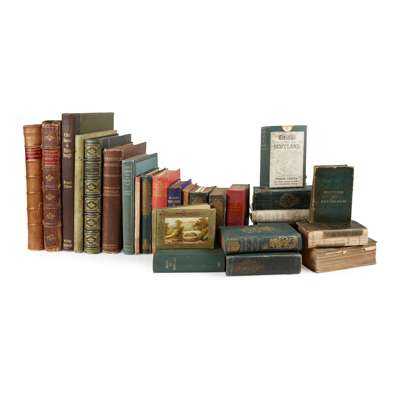 The History of Edinburgh, from its Foundation to the Present Time. Edinburgh: for the Author, 1753. Folio, 20 plates, contemporary calf, a few spots and stains, neatly rebacked, corners worn, lacks plan at p.1; Another Copy. Edinburgh, 1753. Folio, 20 plates, also lacking plan, contemporary calf, worn, covers detached; Robertson, D.H. The Sculptured Stones of Leith. Leith, 1851. 4to, additional lithographed title, folding plan, 18 plates, original cloth, some spotting & staining, rebacked, binding soiled; Wilson, Daniel. Memorials of Edinburgh in the Olden Time. 1848. 2 volumes in 1, 4to, numerous engraved plates on india paper, contemporary green half morocco gilt, lacking 2 engraved plans; Home, Bruce J. Old Houses in Edinburgh. Folio, original quarter green morocco, t.e.g, binding slightly soiled; Johnstone & Hunter, publishers. Historical and Descriptive Account of the County of Mid-Lothian. 1853. 8vo, plates on india paper, original cloth, lacks spine; Maclure & Macdonald's Illustrated Guides to the Highlands. c. 1867, 5 parts in one volume, original cloth, worn; and 19 others on Edinburgh (26)