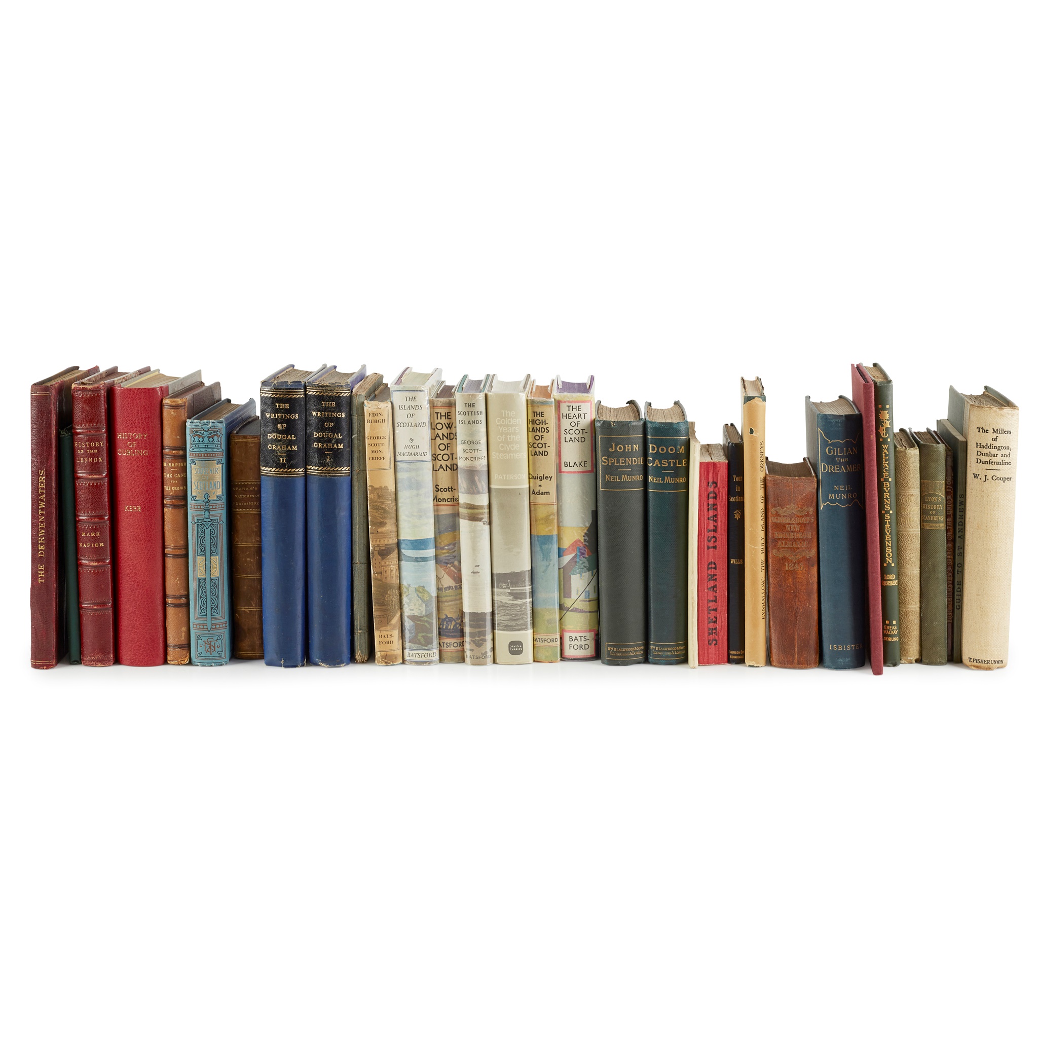 Lyon, J.C. The History of St. Andrews, Ancient and Modern. 1838. engraved title, folding plan and 4 plates, original green embossed cloth, hinges repaired, Napier, Mark. History of the Partition of the Lennox. 1835, engraved plates, maroon half morocco gilt; Napier, Mark. The Case for the Crown in the Wigtown Martyrs proved to be mythos. 1863, manuscript letters bound in at end, half morocco, rubbed; Graham, Rev. P. Sketches of Perthshire. Edinburgh, 1812. 12mo, coloured folding map, contemporary half calf; Nelson, T., publisher. Souvenir of Scotland. 1889. 8vo, numerous chromolithographed plates, original cloth; MacGregor, G. The Collected Writings of Douglas Graham. Glasgow: for Subscribers and Private Circulation, 1883, 2 volumes, 8vo, number 25 of 250 copies, original cloth; Kerr, John. History of Curling. 1890. 8vo, morocco-backed pictorial boards; Holyroodhouse. The History of the Abbey, Palace and Chapel-Royal of. Edinburgh, 1821. Second edition, engraved title and 8 plates, original pictorial boards, uncut; Crosthwaite, J.F. The Last of the Derwentwaters. Cockermouth, 1874, bound with, Amelia, Countess and Heiress of Darwentwater. Jottings of original matter from the Diary of. 1869. 2 works bound in one, maroon half morocco; Mackay, John. The Reay Fencibles. 1890, original green pictorial cloth; Thomson, Andrew. The Hendersonian Testimony, being Five Essays by Working Men in Glasgow. 1849. 12mo, plates, original embossed cloth gilt; and 19 others (31)