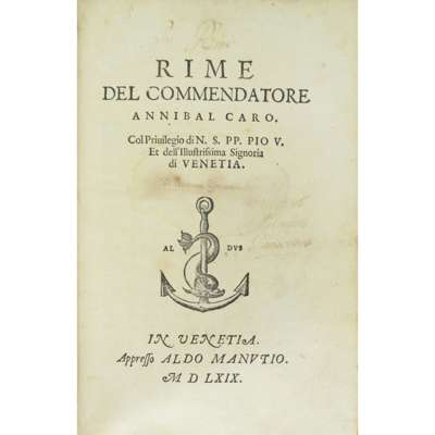 Venetia: 1569. 8vo, original gilt panelled vellum, gilt stamped spine, worming to spine and text-block, faded inscription to title page, some light dampstaining
