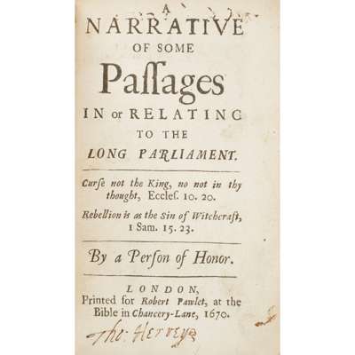 London: Robert Pawlet, 1670. 8vo, [16], 101, [3] p., first and last leaf are blank, early inscription of Thomas Hervey on title, contemporary sheep, rubbed, rebacked, [ESTC R5860]