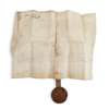 On ascending the English throne in 1603 James moved to London with his family and never returned to Scotland again. Important state documents relating to Scotland had to be sent to London for signature; however for documents of less import a set of wooden stamps had been made bearing the signatures of James, Anna and Charles. Authorisation to use these had been given to leading Scottish statesmen who also held the seal matrices for the Royal Seals of Scotland. Such documents as were issued by them with the stamped signatures also had to bear their actual signatures. This Charter bears the stamp signatures of James and Charles, a very rare combination.