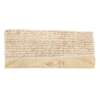 [Halnaby Hall] of a capital messuage and three sellions in Joleby in Croft, with the names of six witnesses, undated but probably early 13th century, small parchment title deed in Latin, with a seal tag but seal missing