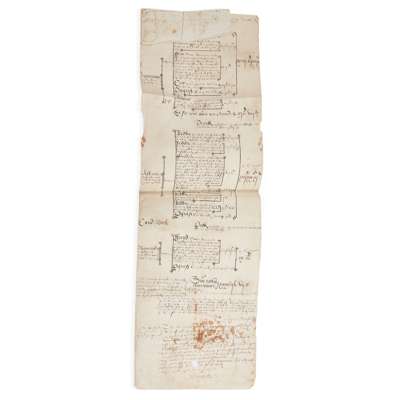 Document signed, c. 1550, a Particular of the [?] Hee Farm Rents of the Manor & Lands of Aston Tirrold and East Hendred, tall manuscript on vellum, 27 x 82cm., signed at foot "Winchester"