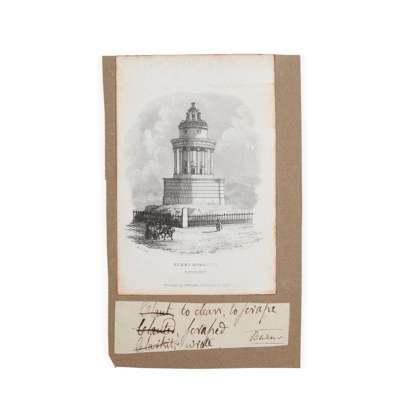 on slip of paper 2 x 8cm., laid down with an engraving of the Burns monument