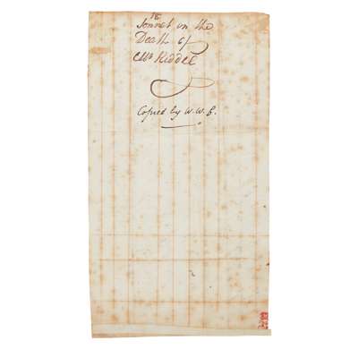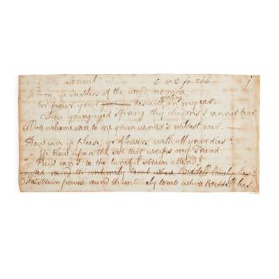 nine lines (one scored through), with corrections, on one page, 115 x 205mm, cut from a larger leaf with trace of mount, browned, docketed on recto 'Cv2 fo 266j' and on verso '18. Sonnet on the Death of Mr Riddel; Copied by W.C.C.'