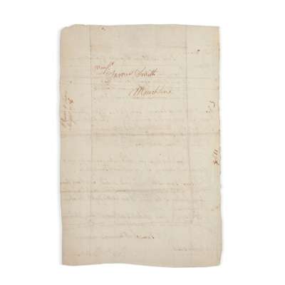 "If you see Jean tell her, I will meet her. So help me Heaven in my hour of need!" Burns plaintively beseeches his friend at the end of his letter. Burns's correspondence with Smith (this being one of only six recorded letters) is of particular interest for details of the poet's turbulent courtship of Jean, revealing his unguarded thoughts on sex and marriage. Smith, son of a Mauchline merchant, revolted against his strict and repressive upbringing by forming with Burns and Richmond the infamous "Court of Equity" - "a happy triumvirate in village revelry". When his business failed in 1788, he emigrated to St. Lucia in the West Indies, where he was thought to have died about 1808. Mackay: Letters of Robert Burns, I, p.117.