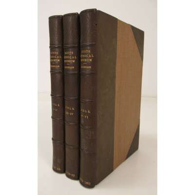 Edinburgh: James Johnson, [1787-1803]. 6 volumes in 3, 8vo, engraved title-pages, 20th century brown half morocco gilt, final leaf in second volume repaired with no loss to text or music, some darkening and mostly marginal dampstaining throughout [ESTC T122111] (3)