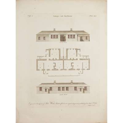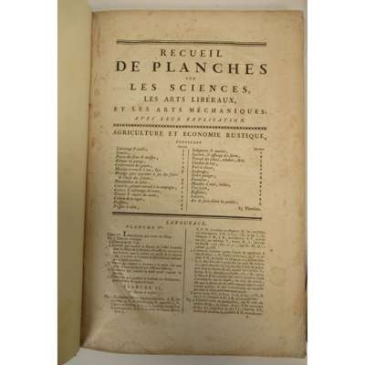 [a part of Encyclopédie, ou Dictionnaire Raisonné des Sciences. Paris, from 1751]. Folio, 83 plates on 80 leaves (some double) as called for, modern cloth with red morocco gilt label to spine; [Wood, John A Series of Plans for Cottages or Habitations of the Labourer... London, edition unknown, plates dated 1781]. Folio, 30 plates and 38pp. text, without title-page, disbound, some foxing and dust-soiling, a couple of plates browned (2)