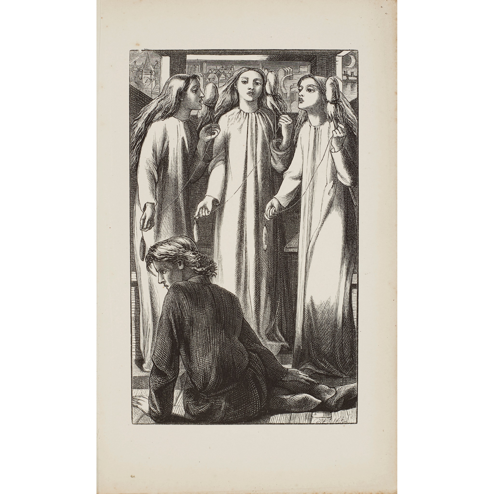 The Music Master... with Nine Woodcuts by Arthur Hughes, D.G. Rossetti and John E. Millais. London: G. Routledge & Co., 1855. First edition, 8vo, original blue blindstamped cloth, spine gilt, 8 plates (one loose, at p.202), 2pp. advertisements at end