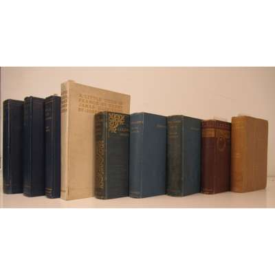 Portrait of a Lady. Boston: Houghton, Mifflin & Co., 1882. Second edition, American issue, secondary binding of dark brown cloth, [Edel A16b], bookplate, rubbed; [Idem] Essays in London. London: James R. Osgood &c., 1893. First edition, owner's inscription and bookplate on endpapers, original salmon cloth, [Edel A40a], slightly rubbed, slightly soiled; [Idem] Terminations. London: Heinemann, 1895. First edition, first issue, [Edel A45], original blue cloth, slightly rubbed, lacks first blank leaf; [Idem] What Maisie Knew. London: Heinemann, 1898, First edition, original blue cloth, rubbed and slightly soiled, [Edel A49a]; [Idem] A Little Tour in France. London: Heinemann, 1900, First English edition, limited issue, number 9 of 150 copies, white vellum boards, [Edel A23e], small split at foot of upper joint, a few light marks; [Idem] The Golden Bowl. London: Methuen, 1905, First English edition, [Edel A60b], original blue cloth, rubbed; [Idem] A Small Boy and others. London: Macmillan, 1913. First English edition, original cloth, [Edel A71a], original blue cloth; [Idem] The Letters. London: Macmillan, 1920, 2 volumes, first edition, original cloth (9)