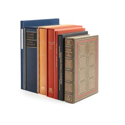 Greene, Graham Doctor Fischer of Geneva or the Bomb Party. New York: Simon and Schuster, 1980. 8vo, number 439 of 500 signed copies, original black cloth gilt, slipcase; Murdoch, Iris The Book and the Brotherhood. Pennsylvania: The Franklin Library, 1988. 8vo, signed on the flyleaf, original morocco gilt; Gunn, Thom In the Twilight Slot. London: Enitharmon Press, 1995. 8vo, number 75 of 90 signed copies, with an accompanying signed and numbered photograph, original blue cloth, slipcase; Coetzee, J.M. His Man and Me. London: Rees & O'Neill / The Nobel Foundation, 2003. 8vo, number 75 of 87 copies, signed, original terracotta cloth gilt; Bennett, Alan Untold Stories. London: Faber and Faber, 2005. 8vo, number 56 of 250 copies signed by the author, original quarter cloth, slipcase; Barnes, Julian Arthur & George. London: Jonathan Cape, 2005. 8vo, number 125 of 125 signed copies, original terracotta quarter cloth gilt, slipcase; McEwan, Ian Sweet Tooth. London: Jonathan Cape, 2012. 8vo, number 75 of 100 signed copies, original quarter orange morocco gilt over patterned boards, slipcase (7)