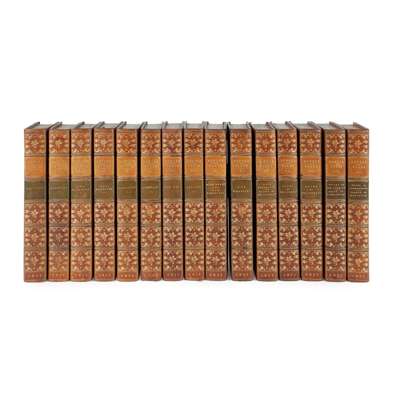 Novels and Tales of the Author of Waverley. Edinburgh: Archibald Constable and Co., 1821. 15 volumes, 12mo,half calf gilt with gilt tooling and morocco labels in orange and green to spines (15)