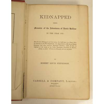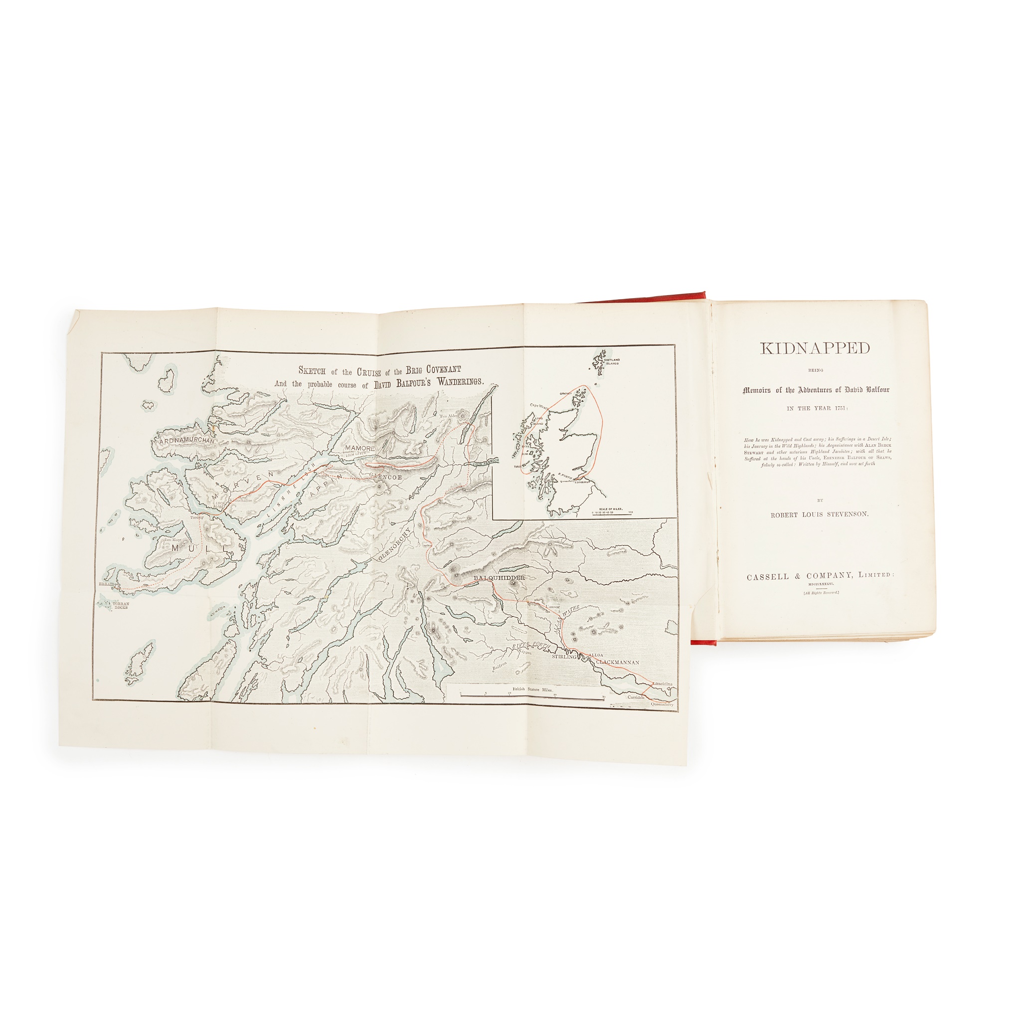London: Cassell & Company, Limited, 1886. 8vo, first edition, first issue, with "business" p.40 line 11, "nine o'clock" p.64 line 1, "Long Islands" p.101 lines 9/10 and 16pp. of adverts at rear dated 5G.4.86, folding map, original red cloth gilt, shelf lean, spine darkened, map becoming detached, some slight internal soiling