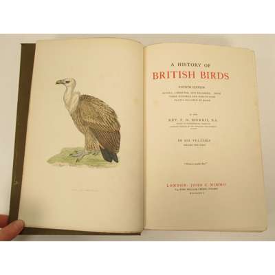 London: John C. Nimmo, 1895. 6 volumes, "fourth edition", 8vo, 394 coloured plates, original green cloth gilt; [Idem] A Natural History of the Nests and Eggs of British Birds. London: John C. Nimmo, 1896. 3 volumes, "fourth edition", 8vo, 248 coloured plates, original green cloth gilt, gift inscription to flyleaf, one plate loose (9)