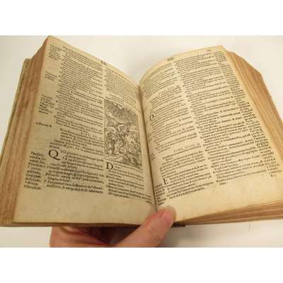[Paris:] François Gryphe, 1541. 8vo, many woodcuts throughout the text, disbound, lacking B*1 & 6-8 (final leaves, not part of the main Bible text), a few headers a little shaved [USTC 140118]