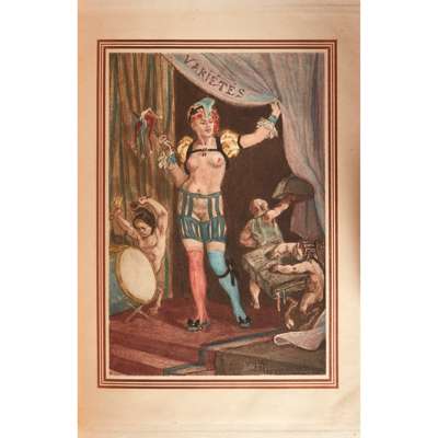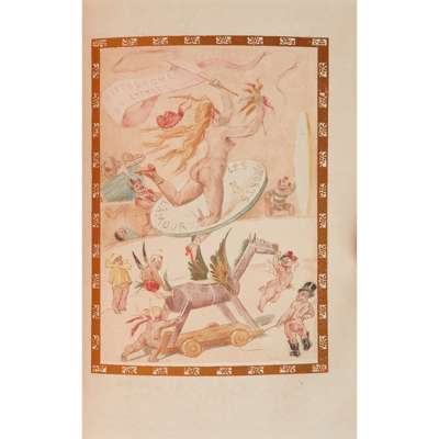 Paris, 1896. 8vo, number 25 of 183 copies produced (this copy being subscribed to by M. Jules Brivois), colour and gilt title-page and 8 plates in 2 states, original wrappers bound in, French orange quarter morocco gilt will vellum corners by Honnelaitre