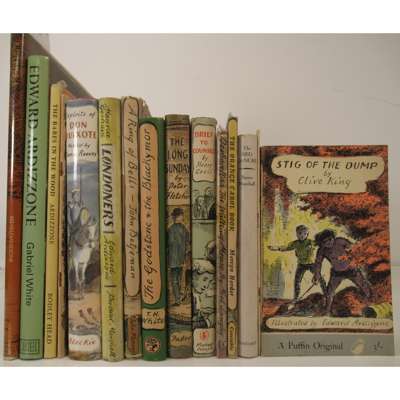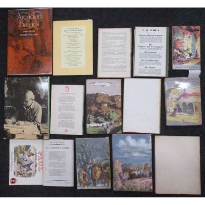 Maurois, A. The Battle of France. 1940, dustwrapper slightly frayed; Marshall, B. The Red Danube, 1947, dustwrapper; Fordham, H. Hey Nonny Yes. 1947, dustwrapper Langley, Noel Desbarolda, the Waltzing Mouse. 1947, dustwrapper slightly frayed; Gorham, M. Londoners. 1952, dustwrapper a little soiled, Cecil, H. Brief to Counsel. 1958; Fletcher, P. The Long Sunday. 1958, dustwrapper; Cervantes Exploits of Don Quixhote. 1959; White, T.H. The Godstone and the Blackymor. 1959, original cloth, dustwrapper; A Ring of Bells. 1962, owner's inscription to endpaper; Horder, Mervyn The Orange Carol Book. 1962, signed by author, original limp pictorial cloth; Paul. Puffin Books, 1965, original wrappers; Masterpieces of Victorian Photography 1840-1900, 1951, original pictorial wrappers; The Old Ballad of the Babes in the Wood. 1972, original pictorial wrappers; Reeves, J. Arcadian Ballads. 1978, 4to, original cloth, dustwrapper; King, Clive Stig of the Dump, 1963, paperback; White, G. Edward Ardizzone Artist and Illustrator. 1979. 4to, original cloth, dustwrapper, all with illustrations and/or dustwrappers or covers by Ardizzone (16)