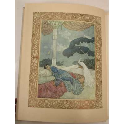 Dulac, Edmund The Rubaiyat of Omar Khayyam. London: Hodder and Stoughton, [1909, 'printed from the second edition'] 4to, 20 tipped-in plates by Dulac, original cream cloth gilt; Menpes, Mortimer The Durbar. London: Adam and Charles Black, [1903]. 4to, number 86 of 1000 de luxe edition copies signed by Mortimer Menpes, frontispiece, 100 plates, original pictorial cream cloth gilt, a little wear to covers and spine; Day, Lal Behari - Warwick Goble, illustrator Folk-Tales of Bengal. London: Macmillan and Co., Limited, 1912. 8vo, original red cloth gilt; Balzac, Honoré Sur la Moyne Amador... Paris: René Kieffer, 1921. 8vo, contemporary blue half calf gilt, original wrappers bound in; Spooner, M. Dibdin, illustrator The Golden Staircase. London: T.C. & E.C. Jack, 1906. 8vo, original purple cloth gilt, some fading to covers, a little foxing; Rackham, Arthur, illustrator - Oliver Goldsmith The Vicar of Wakefield. London: George G. Harrap & Company, [1929]. 8vo, original blue cloth gilt; and another copy, later (7)