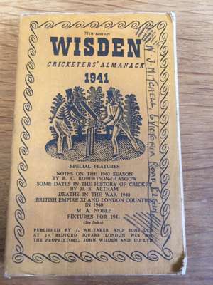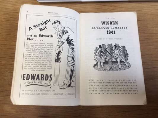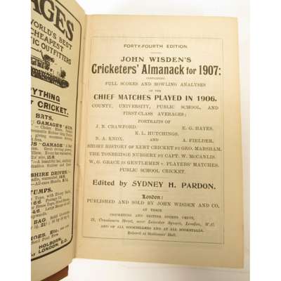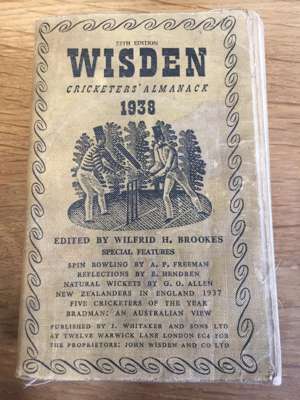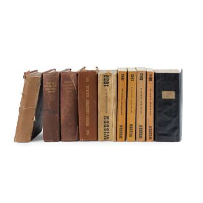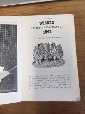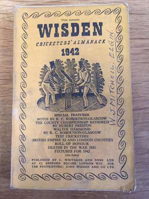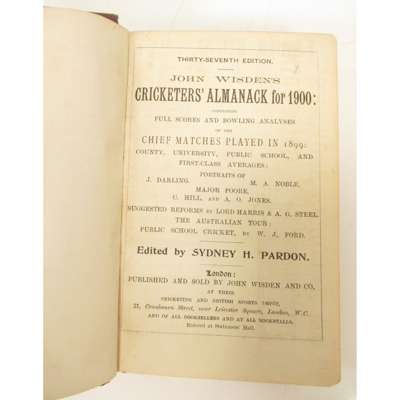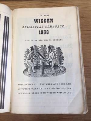 [Cricketer's Almanack for 1898. London: John Wisden and Co.]. Purple cloth, spine lacking, lacking title-page, covers detached; Cricketer's Almanack for 1900. London: John Wisden and Co. Purple cloth gilt; [Cricketer's Almanack for 1902. London: John Wisden and Co.]. Purple cloth gilt, title-page lacking; Cricketer's Almanack for 1907. London: John Wisden and Co. Brown cloth gilt; Cricketer's Almanack for 1929. London: John Wisden and Co.. Later black cloth, a little dampstaining at rear; Cricketer's Almanack 1938. London: John Whitaker and Sons Ltd. Original yellow cloth, a little dust-soiling; Cricketer's Almanack 1941. London: J. Whitaker and Sons Ltd. Original yellow cloth; Cricketer's Almanack 1942. London: J. Whitaker and Sons Ltd. Original yellow cloth; Cricketer's Almanack 1943. London: J. Whitaker and Sons Ltd. Original brown cloth gilt; Cricketer's Almanack 1944. London: Sporting Handbooks Ltd.. Original orange-brown cloth