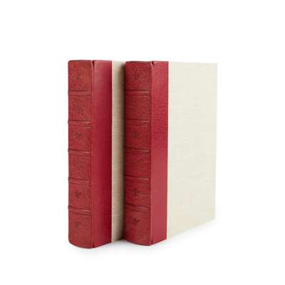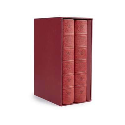 [London: William Heinemann Ltd, 1989]. 8vo, 2 volumes, being number 12 of 56 copies produced in quarter red morocco, in slipcase accompanied by a specimen chapter for the final typesetting proof of chapter 12, a sample dust-jacket and a literary self reflection by Jeremy Wilson produced by the Castle Hill Press